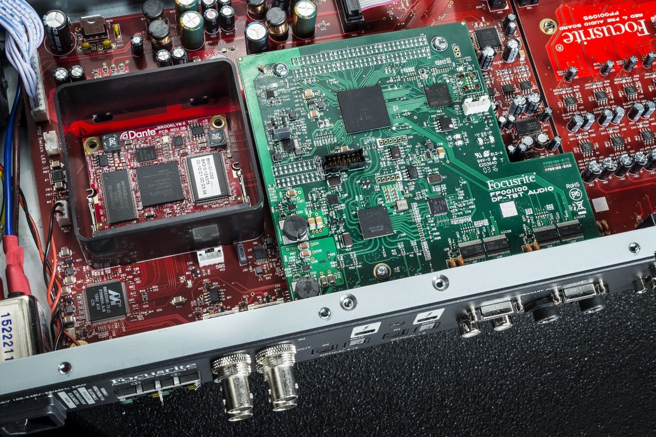 The Dante 'Brooklyn' card is walled in by a metal sheath, to protect the sensitive digital components from stray noise emanating from elsewhere inside the Red 4Pre