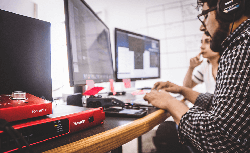 One of the post-production engineers at work at the new facility of Cinematic Media, located just north of Mexico City, employing Red and RedNet components from Focusrite.