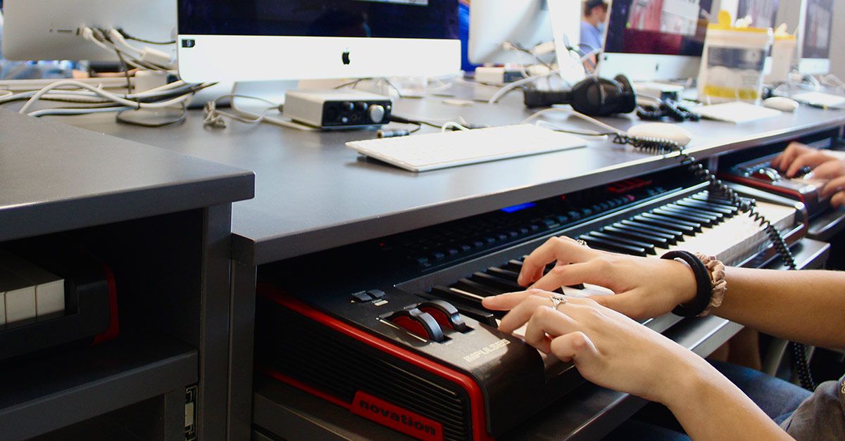 The program builds students' musical skills and understanding from the outset. Students create music on the keyboard piano—not pads—because it grounds them in fundamentals. Instead of using the arpeggiator function, students practice and internalize these sounds and ideas on a keyboard.