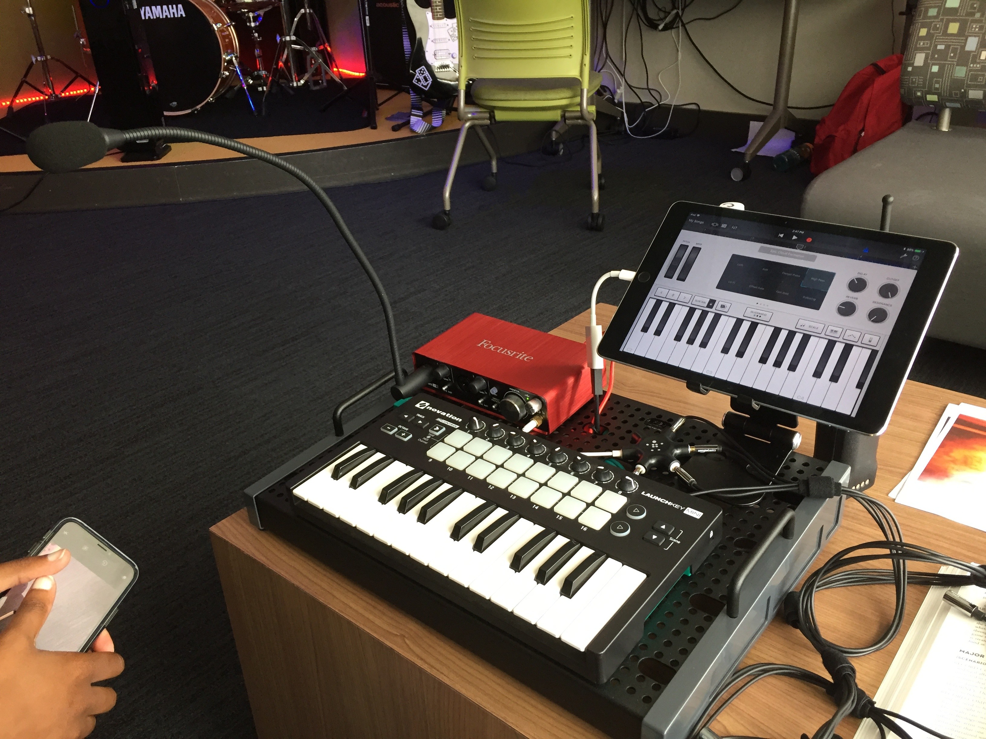 A Mobile Studio setup employed by the Music and Youth initiative, featuring gear from Focusrite and Novation.