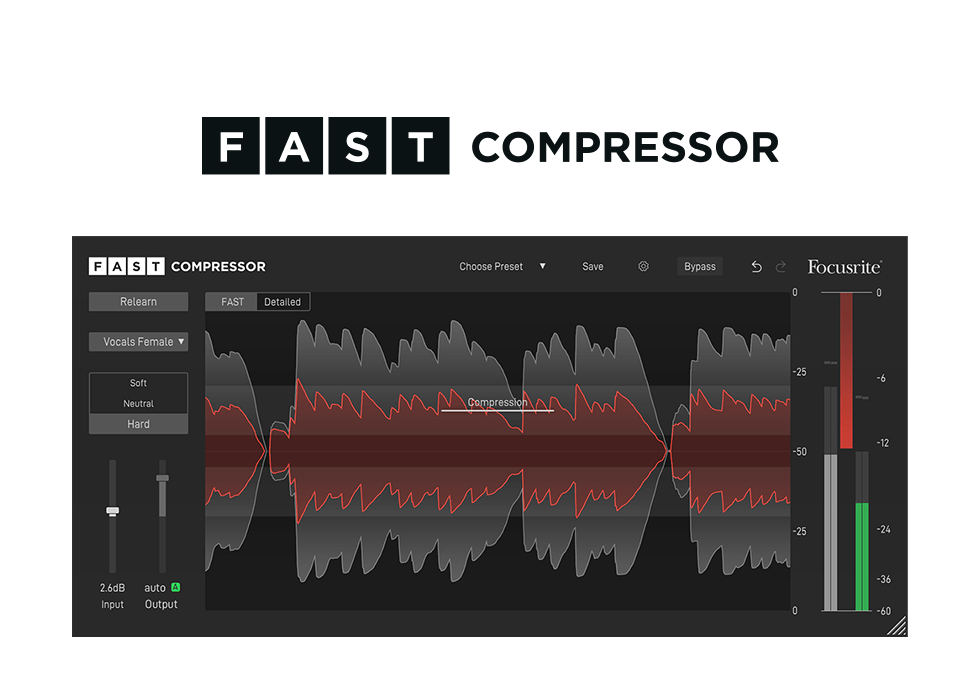 FAST Compressor maintains control over dynamics and help your sound fit in the mix by automatically tailoring your compression settings.