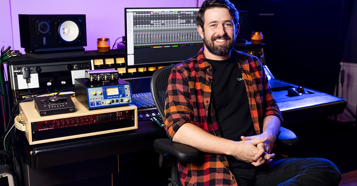 Nick, a California native, whose engineering credits also include Post Malone, YG, Macklemore, Ariel Pink, Machine Gun Kelly, Tyla Yaweh, Travis Barker, Yungblud, and others, has been working with 24kGoldn for the last couple of years, both traveling and in the studio. Two or three months ago, he slimmed down his mobile rig to a Pelican case containing a recording interface and his latest Focusrite preamp.