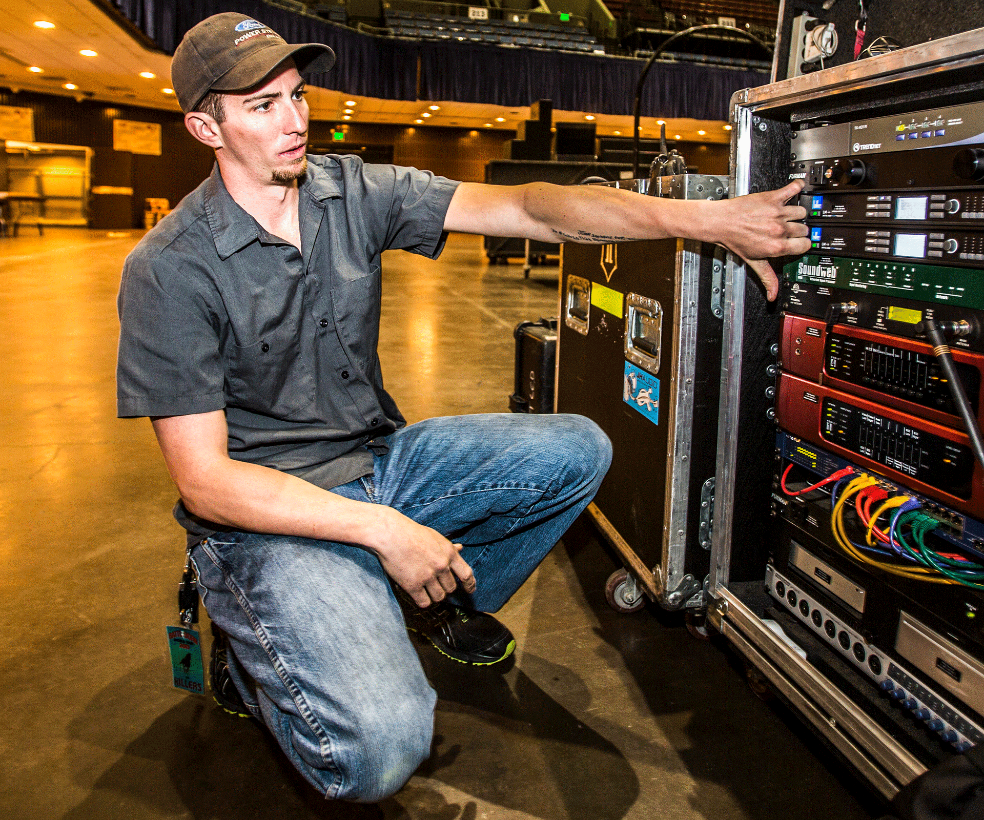 Thanks to its flexibility, Focusrite's RedNet technology is being implemented in an amazingly diverse range of applications. From single-unit laptop recording setups to multi-room studio environments, RedNet is a great-sounding, hassle-free and incredibly versatile audio interface system. One of the most innovative RedNet applications is as part of the digital audio systems that run most front-of-house (FOH) PA systems on large tours the world over. One such implementation is in the FOH rig of The Killers' world tour, where a RedNet 1 eight-channel A-D/D-A and RedNet 4 eight-channel mic preamp perform a number of duties for Systems Engineer Philip Reynolds. He made the decision to use RedNet in order to maintain the audio within the digital domain — A-D conversion takes place side-stage as soon as the mics plug into the stagebox — for as long as possible before conversion to analogue. It's this, says Philip, that keeps the audio quality world class.