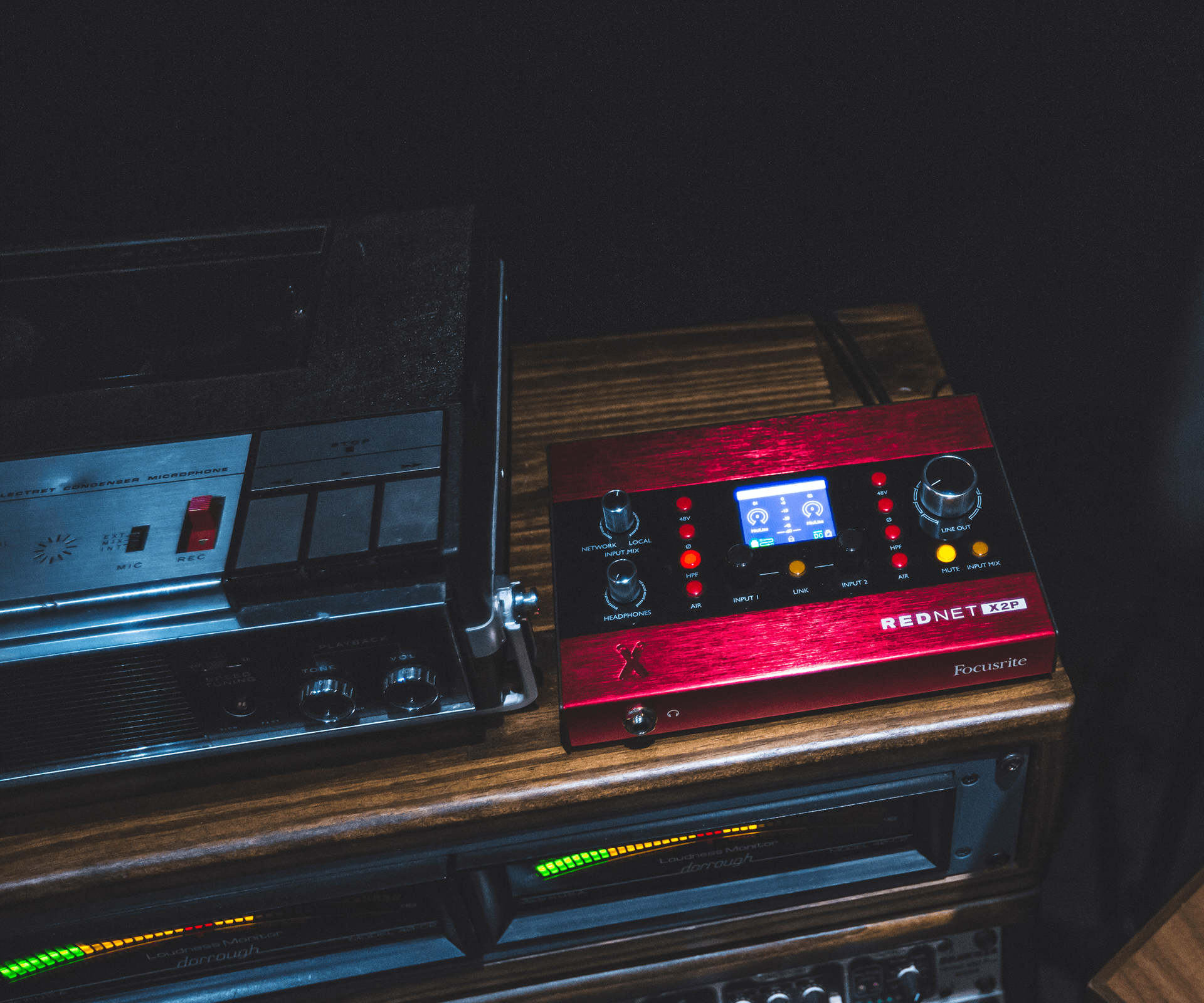 In addition, Focusrite RedNet X2P 2x2 Dante audio interfaces are used elsewhere in Sim, to expand the Dante network for ancillary operations. In the large theater, ad-hoc recordings can be captured using a shotgun mic and an X2P, and tracked straight into a Pro Tools project. In the facility's various vocal booths, X2Ps provide mic preamps for VO mics, and headphones mixes for talent, all from within one compact box that can be powered via PoE.