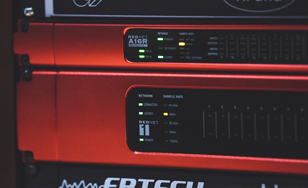 Four RedNet 5 Pro Tools® | HD bridges are located in the machine room, feeding the Pro Tools systems in each of the three broadcast audio mix suites. Two of those suites are equipped with RedNet 1 eight-channel A-D/D-A interfaces, while all three suites have RedNet 2 and/or RedNet A16R 16-Channel A-D/D-A interfaces. These three types of RedNet interface create a robust, efficient and effective AoIP infrastructure that has vastly streamlined the workflow for Sim.