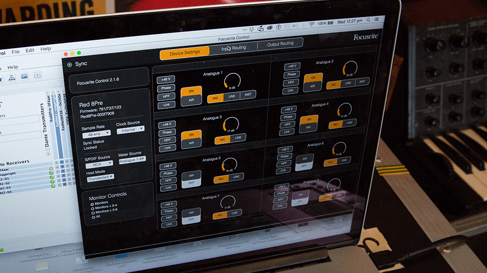 Focusrite Control is designed to keep everything as simple as possible, because the low latency offered by Focusrite interfaces means that complex cue-mixing and routing needs can be handled in your recording software.