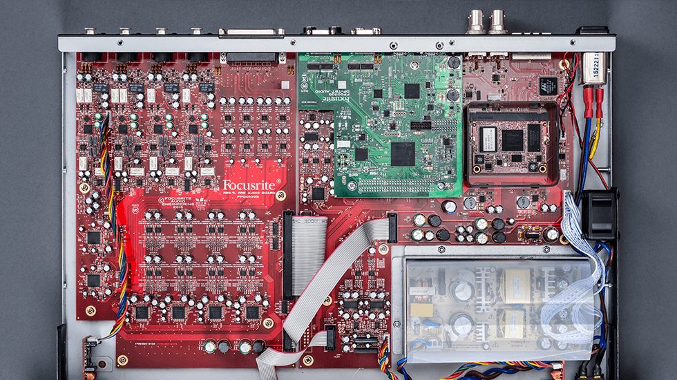 All of Focusrite’s rackmount audio interfaces have an in-built power supply. It’s common to see external power supplies used in smaller interfaces due to space constraints, and in cheaper rackmount interfaces.