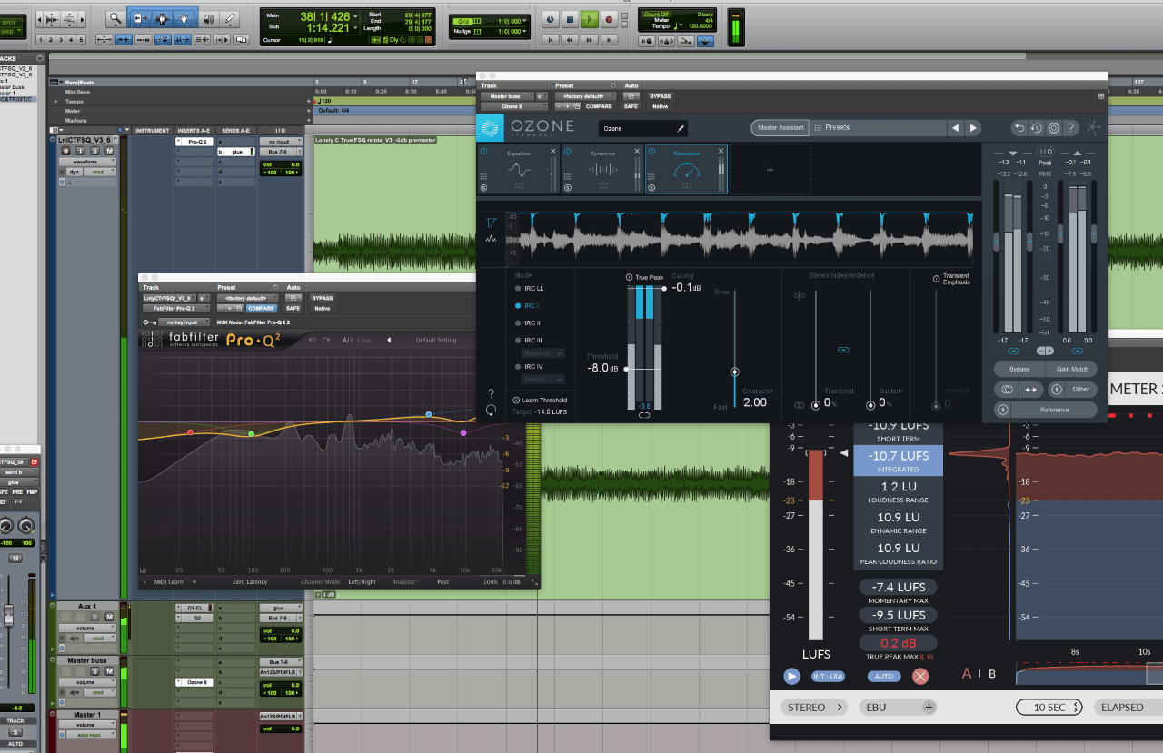 With my group FSQ, the majority of our productions are remixes for other artists on record labels we may not typically work with. These remixes are going on EP and album releases with work by other producers. So, to keep consistency, the main artist’s record label will master all of the remixes for that release together, using the same mastering engineer and process. However, we also make reference masters that we use to play out in clubs, on radio shows and recorded DJ sets. We choose to handle the mastering process ourselves. In FSQ, we’re lucky to have producer One Era aka Matt Coogan in our ranks, a talented mastering ear who masters all our music using the popular software mastering suite Ozone by iZotope.